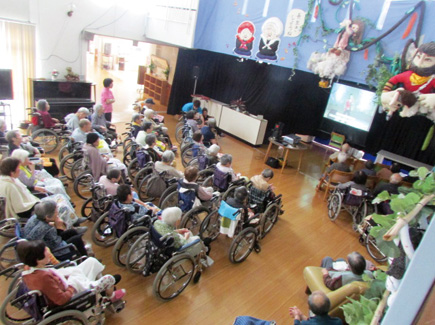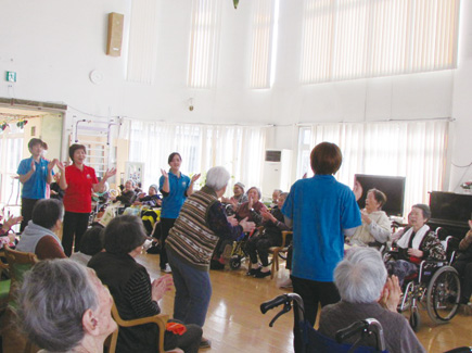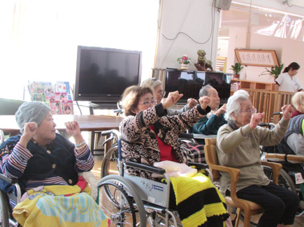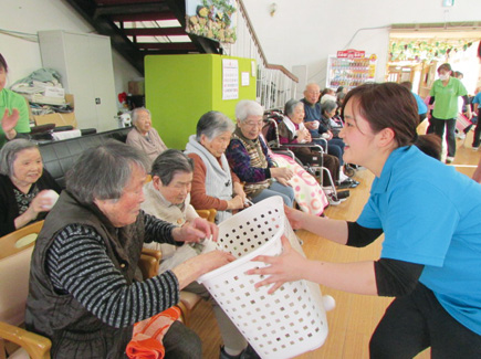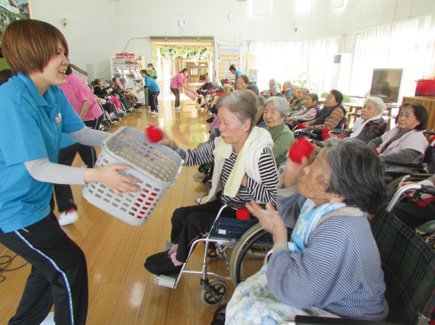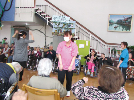 新人職員さん達と口腔体操・グーパー体操・玉入れ・炭坑節